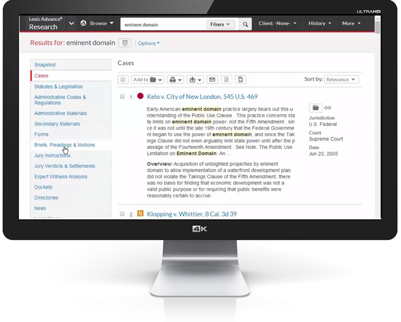 Lexis Advance® is the new, modern version of Lexis.com®, the legal and business research product. It involves a new search engine and the freedom of merely entering the search phrase without being required to select any filters prior to searching. The results are presented on separate pages with tabs for each content type. There are also an array of appropriate post-filters to choose from (jurisdiction, date, etc.) once the results are presented. I was part of the team who worked on Lexis Advance, starting with the second release through the 2014 redesigned version shown here (redesigned to be responsive, accessible and internationally localizable).