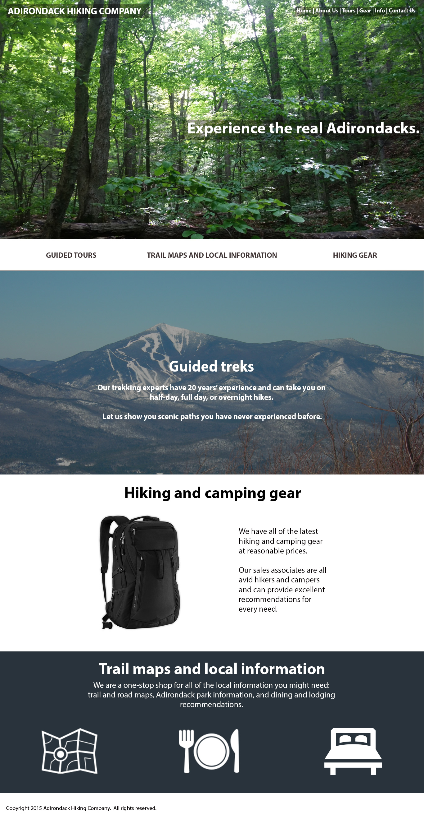 I designed the page using Photoshop. The hero image is my photograph. Icons designed by www.freepik.com.