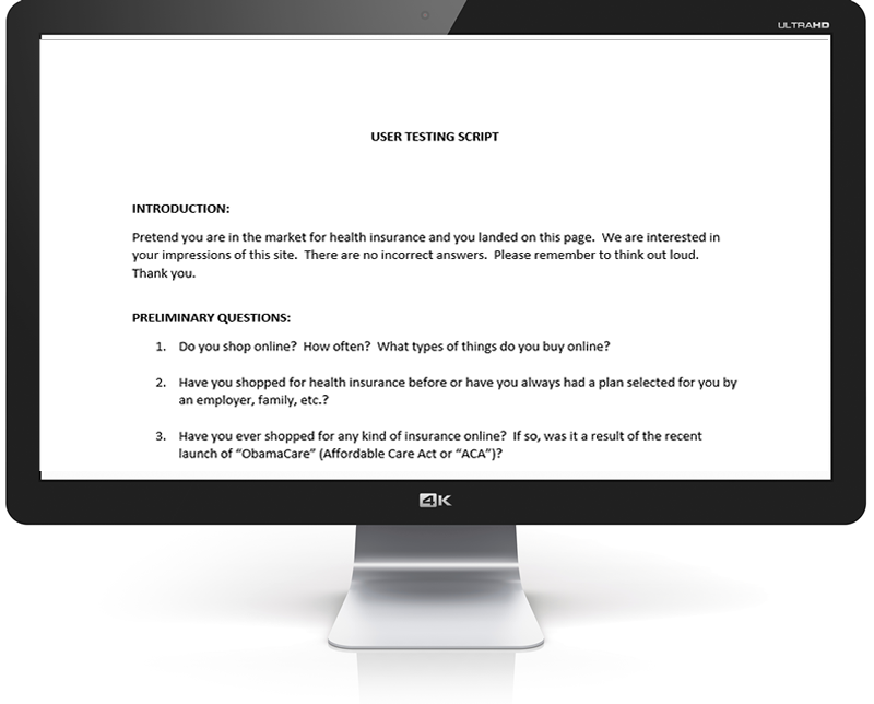 This is the script for some user testing I conducted for a local health insurance agency who wanted to know what consumers thought of its health insurance purchasing portal.